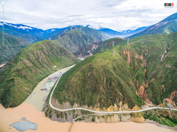 只要过桥,就进出一次西藏了。两岸有许多的大拐弯。我们在江边起飞。拍摄这里的梯田,在如此艰险的地段都能够生活下来,需要多少的努力和汗水。