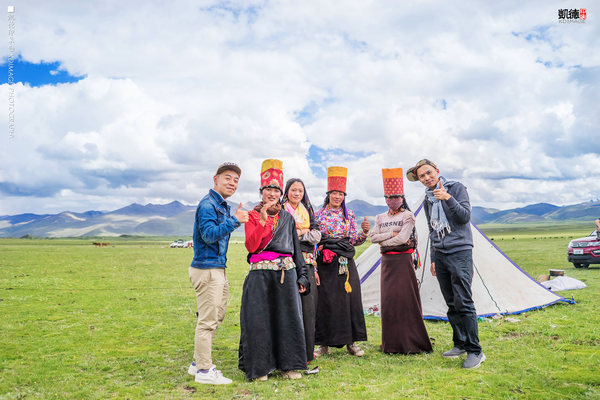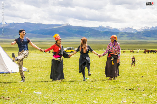 在这样的美丽草原上,藏民们与我们一起跳舞。虽然语言不怎么通,不过歌声和笑声是相通的。